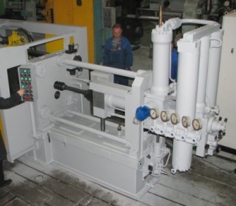 Для обеспечения необходимого давления и скорости прессования используются два гидравлических аккумулятора, которые заряжаются перед операцией прессования.
