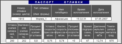 Четырнадцать главных параметров составляют паспорт отливки.